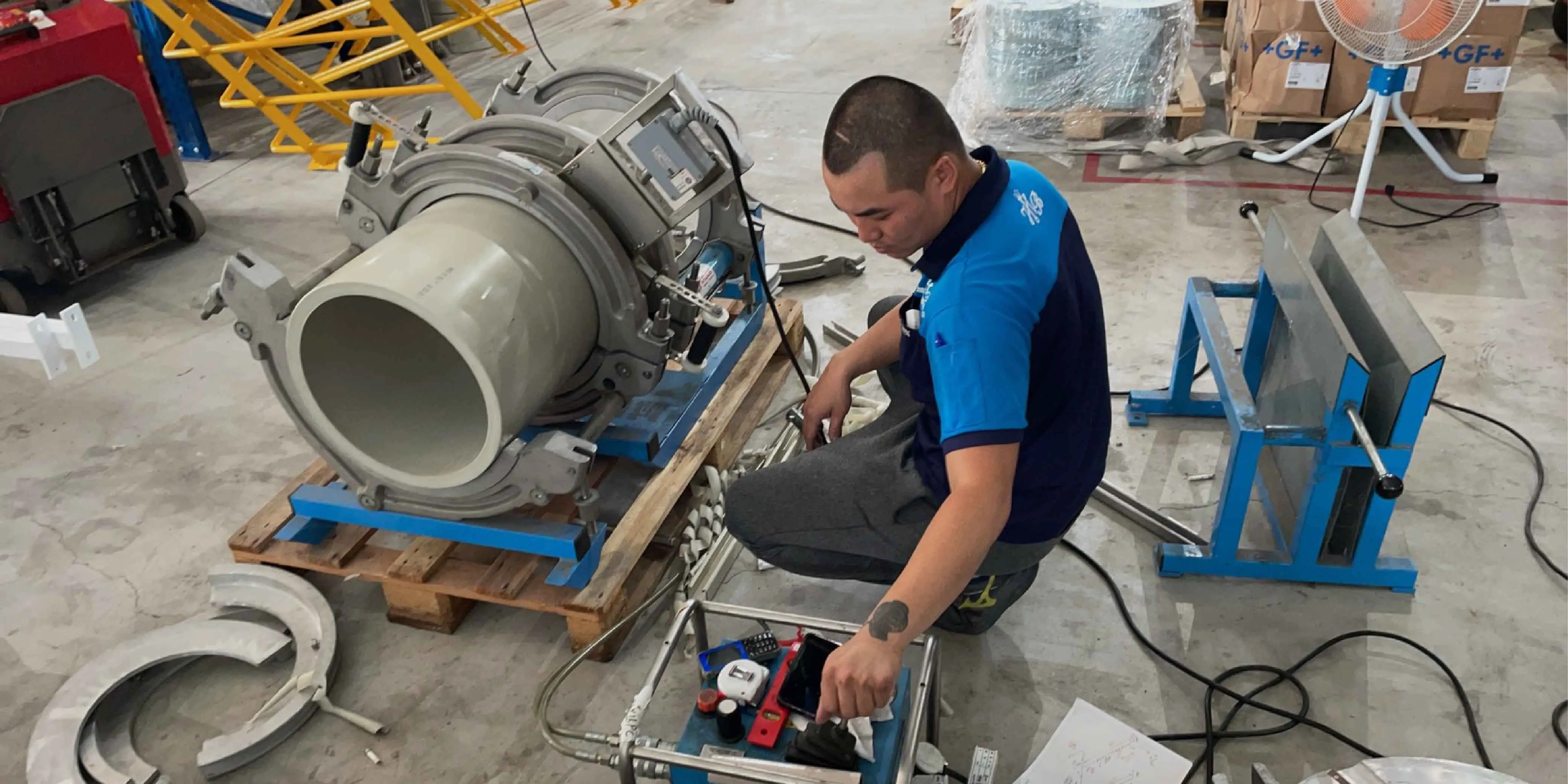 選用德國 WIDOS 系列焊接機(OD 20 – 315 mm, PE/PP/PVDF)及自動焊接紀錄系統,確保每一道焊口達到國際級潔淨與強度標準。